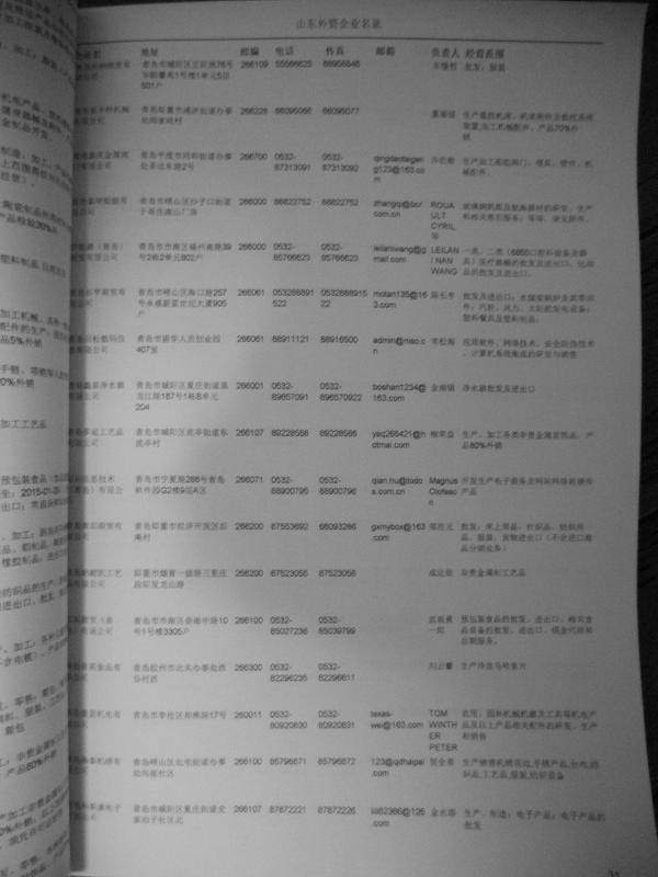 某個國別或地區投資企業黃頁 如煙臺日企黃頁、煙臺臺企名單  80% RMB:300元