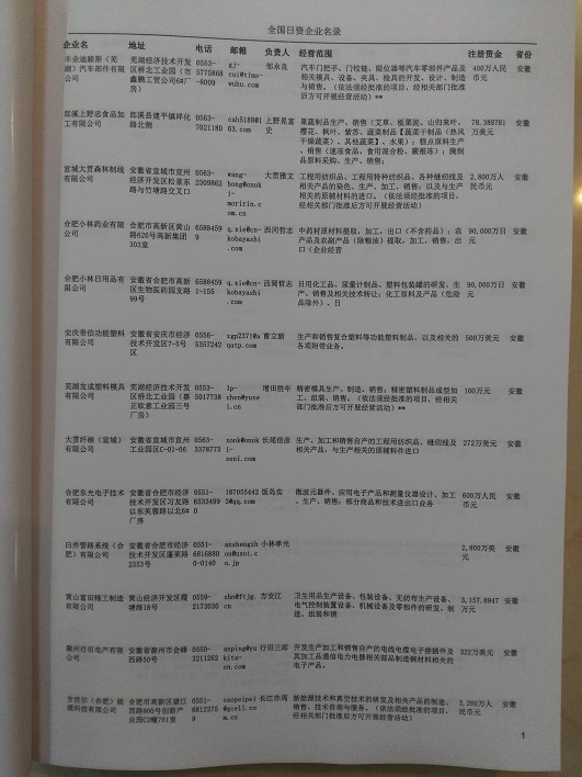 最新日本在華企業(yè)黃頁(yè)主要收錄了日本在中國(guó)境內(nèi)的獨(dú)資、合資、合作經(jīng)營(yíng)等類型的企業(yè)通信黃頁(yè),日本外商投資企業(yè)黃頁(yè)內(nèi)容有:企業(yè)名稱、地址、電話、傳真、電子郵箱、經(jīng)營(yíng)范圍、注冊(cè)資金等;日資企業(yè)黃頁(yè)都是一些國(guó)際上的知名品牌企業(yè)在大陸地區(qū)設(shè)立的分公司及辦事機(jī)構(gòu),這類企業(yè)經(jīng)濟(jì)實(shí)力、技術(shù)實(shí)力與品牌效應(yīng)都比較強(qiáng),與這類企業(yè)開展合作業(yè)務(wù)是許多國(guó)內(nèi)企業(yè)夢(mèng)寐以求的事情,因此在華日資企業(yè)名單是各個(gè)國(guó)內(nèi)企業(yè)提高銷售業(yè)績(jī)必備的參考工具!
