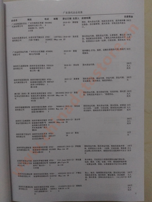 廣東貨運公司黃頁包括:企業名稱、負責人聯系方式、企業電話、傳真、Email、經營范圍、地址、郵編等信息。