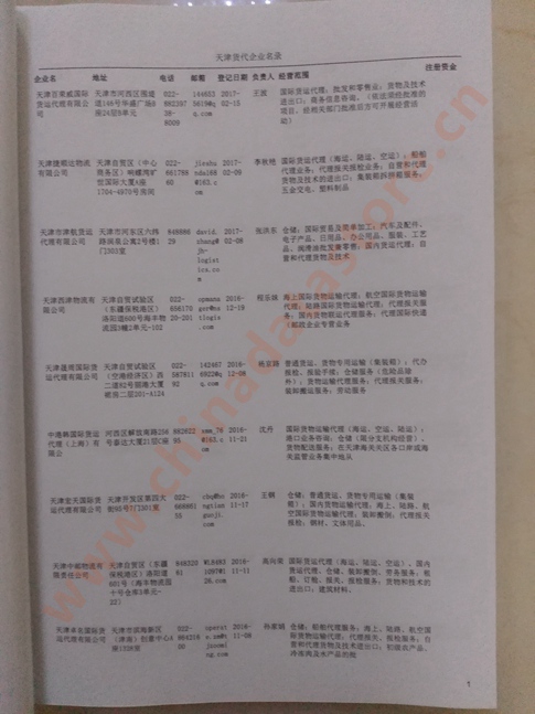 天津貨運公司黃頁包括:企業名稱、負責人聯系方式、企業電話、傳真、Email、經營范圍、地址、郵編等信息。
