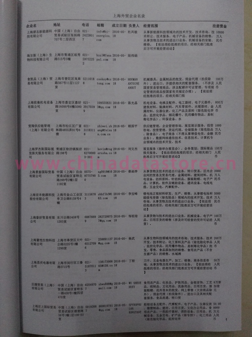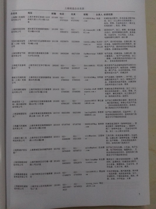 2021版最新上海企業(yè)黃頁(yè)包括《上海制造企業(yè)黃頁(yè)》、《上海貿(mào)易企業(yè)黃頁(yè)》、《上海民營(yíng)企業(yè)黃頁(yè)》、《上海外資企業(yè)黃頁(yè)》、《上海外貿(mào)企業(yè)黃頁(yè)》共五冊(cè),現(xiàn)優(yōu)惠價(jià):280元/冊(cè)。每?jī)?cè)內(nèi)容包括:?jiǎn)挝幻Q(chēng)、地址、郵編、電話(huà)、傳真、郵箱、經(jīng)營(yíng)范圍等;上海企業(yè)黃頁(yè)涵蓋了近幾年來(lái)最新成立的、有一定規(guī)模的企業(yè),具有非常高的營(yíng)銷(xiāo)價(jià)值。有了這套黃頁(yè)開(kāi)展業(yè)務(wù)也有了針對(duì)性,也省去了盲目去尋找客戶(hù)名單而浪費(fèi)的時(shí)間了,工作效率也會(huì)有很大的提高。歡迎需要上海企業(yè)黃頁(yè)的朋友及時(shí)聯(lián)系我們!