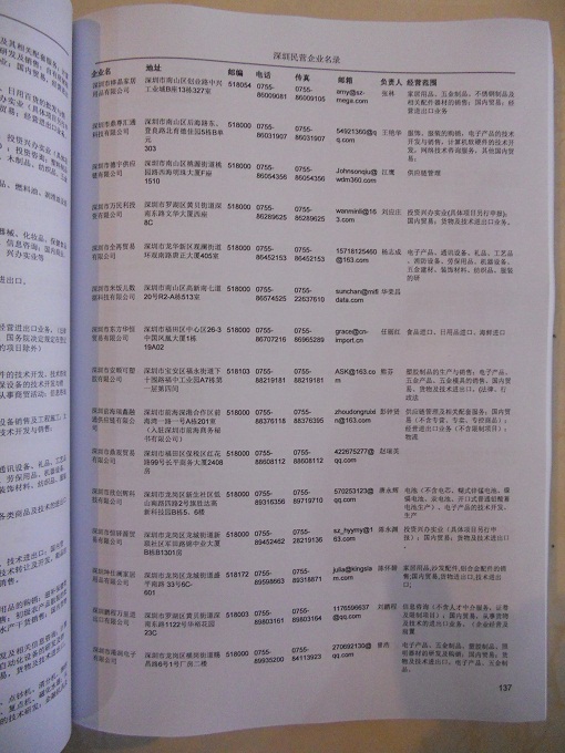 2021版最新深圳企業(yè)黃頁包括《深圳制造企業(yè)黃頁》、《深圳貿(mào)易企業(yè)黃頁》、《深圳民營企業(yè)黃頁》、《深圳外資企業(yè)黃頁》、《深圳外貿(mào)企業(yè)黃頁》共五冊,現(xiàn)優(yōu)惠價:280元/冊。每冊內(nèi)容包括:單位名稱、地址、郵編、電話、傳真、郵箱、經(jīng)營范圍等;深圳企業(yè)黃頁涵蓋了近幾年來最新成立的、有一定規(guī)模的企業(yè),具有非常高的營銷價值。有了這套黃頁開展業(yè)務(wù)也有了針對性,也省去了盲目去尋找客戶名單而浪費(fèi)的時間了,工作效率也會有很大的提高。歡迎需要深圳企業(yè)黃頁的朋友及時聯(lián)系我們!