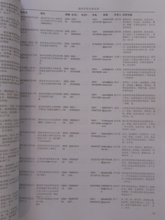2021版最新福州企業黃頁包括《福州制造企業黃頁》、《福州貿易企業黃頁》、《福州民營企業黃頁》、《福州外資企業黃頁》、《福州外貿企業黃頁》共五冊,現優惠價:280元/冊。每冊內容包括:單位名稱、地址、郵編、電話、傳真、郵箱、經營范圍等;福州企業黃頁涵蓋了近幾年來最新成立的、有一定規模的企業,具有非常高的營銷價值。有了這套黃頁開展業務也有了針對性,也省去了盲目去尋找客戶名單而浪費的時間了,工作效率也會有很大的提高。歡迎需要福州企業黃頁的朋友及時聯系我們!