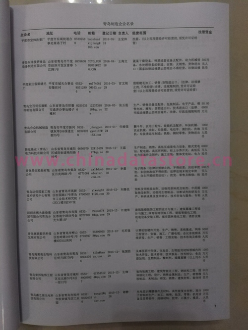 2021版最新青島企業(yè)黃頁包括《青島制造企業(yè)黃頁》、《青島貿(mào)易企業(yè)黃頁》、《青島民營企業(yè)黃頁》、《青島外資企業(yè)黃頁》、《青島外貿(mào)企業(yè)黃頁》共五冊,現(xiàn)優(yōu)惠價:280元/冊。每冊內(nèi)容包括:單位名稱、地址、郵編、電話、傳真、郵箱、經(jīng)營范圍等;青島企業(yè)黃頁涵蓋了近幾年來最新成立的、有一定規(guī)模的企業(yè),具有非常高的營銷價值。有了這套黃頁開展業(yè)務(wù)也有了針對性,也省去了盲目去尋找客戶名單而浪費的時間了,工作效率也會有很大的提高。歡迎需要青島企業(yè)黃頁的朋友及時聯(lián)系我們!