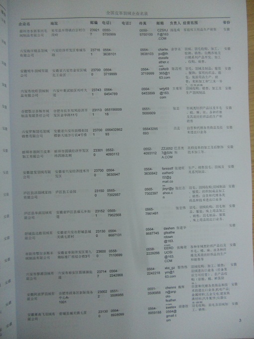 | 全國皮革毛皮羽絨企業黃頁 | 全國所有皮革毛皮羽絨企業黃頁 | 80% - 90% | 2000元 | 附贈上下兩冊皮革毛皮羽絨紙質印刷品 |