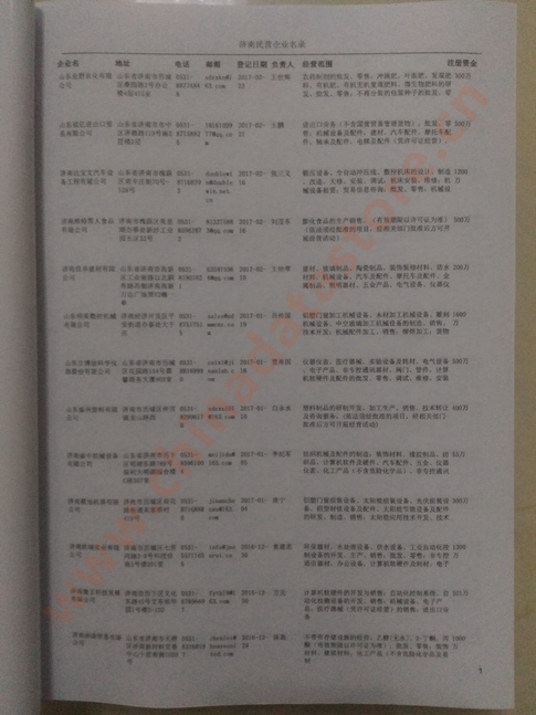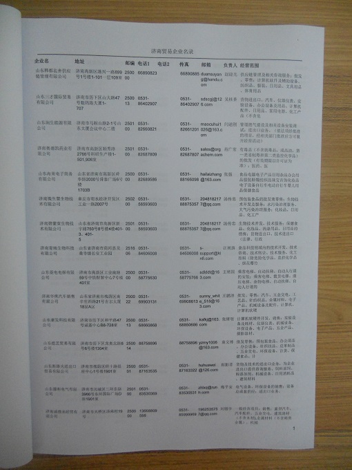 2021版最新濟南企業黃頁包括《濟南制造企業黃頁》、《濟南貿易企業黃頁》、《濟南民營企業黃頁》、《濟南外資企業黃頁》、《濟南外貿企業黃頁》共五冊,現優惠價:280元/冊。每冊內容包括:單位名稱、地址、郵編、電話、傳真、郵箱、經營范圍等;濟南企業黃頁涵蓋了近幾年來最新成立的、有一定規模的企業,具有非常高的營銷價值。有了這套黃頁開展業務也有了針對性,也省去了盲目去尋找客戶名單而浪費的時間了,工作效率也會有很大的提高。歡迎需要濟南企業黃頁的朋友及時聯系我們!