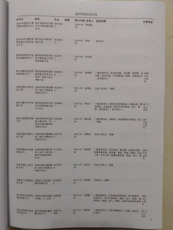 2021版最新溫州企業黃頁包括《溫州制造企業黃頁》、《溫州貿易企業黃頁》、《溫州民營企業黃頁》、《溫州外資企業黃頁》、《溫州外貿企業黃頁》共五冊,現優惠價:280元/冊。每冊內容包括:單位名稱、地址、郵編、電話、傳真、郵箱、經營范圍等;溫州企業黃頁涵蓋了近幾年來最新成立的、有一定規模的企業,具有非常高的營銷價值。有了這套黃頁開展業務也有了針對性,也省去了盲目去尋找客戶名單而浪費的時間了,工作效率也會有很大的提高。歡迎需要溫州企業黃頁的朋友及時聯系我們!