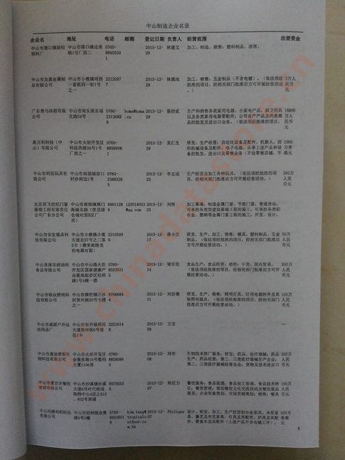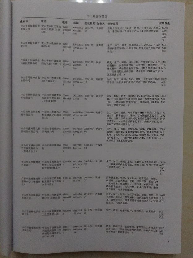 2021版最新中山企業黃頁包括《中山制造企業黃頁》、《中山貿易企業黃頁》、《中山民營企業黃頁》、《中山外資企業黃頁》、《中山外貿企業黃頁》共五冊,現優惠價:280元/冊。每冊內容包括:單位名稱、地址、郵編、電話、傳真、郵箱、經營范圍等;中山企業黃頁涵蓋了近幾年來最新成立的、有一定規模的企業,具有非常高的營銷價值。有了這套黃頁開展業務也有了針對性,也省去了盲目去尋找客戶名單而浪費的時間了,工作效率也會有很大的提高。歡迎需要中山企業黃頁的朋友及時聯系我們!