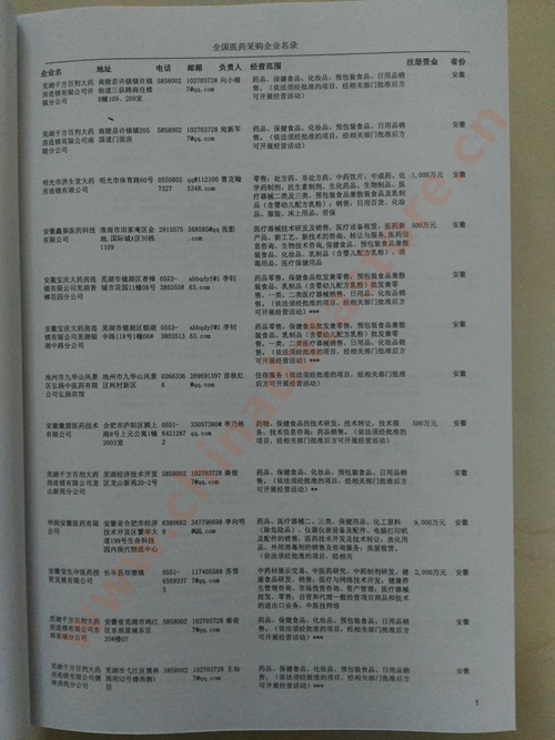 2025年新版中國醫藥采購企業黃頁,收錄了全國各地經營范圍涉及醫藥產品的貿易企業,這些都是頗具實力的醫藥產品的中國采購商。黃頁內容包含:企業名稱、地址、電話、傳真、郵箱、經營范圍、省份、注冊資金等信息。該套黃頁包含一個黃頁光碟加一冊紙質書刊,全國價格:1500元,省/直轄市價格:400元,城市價格:200元,共收錄了全國各地大概152246(統計日期:2018.1)家醫藥產品采購企業。黃頁光碟中是EXCEL格式,信息可任意修改、復制、打印、導出及導入到傳真、郵件群發等軟件中,無任何限制。