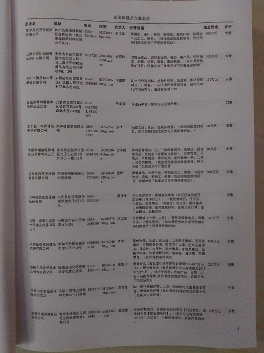 某省或直轄市 如上海、浙江保健品企業名單  80% - 90% 600元 附贈一冊保健品紙質印刷品