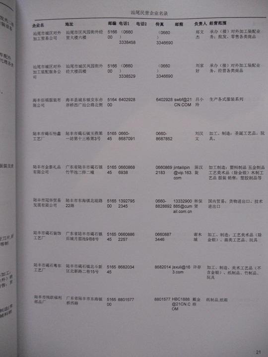 2021版最新汕尾企業黃頁包括《汕尾制造企業黃頁》、《汕尾民營企業黃頁》,現優惠價:280元/冊。每冊內容包括:單位名稱、地址、郵編、電話、傳真、郵箱、經營范圍等;汕尾企業黃頁涵蓋了近幾年來最新成立的、有一定規模的企業,具有非常高的營銷價值。有了這套黃頁開展業務也有了針對性,也省去了盲目去尋找客戶名單而浪費的時間了,工作效率也會有很大的提高。歡迎需要汕尾企業黃頁的朋友及時聯系我們!
