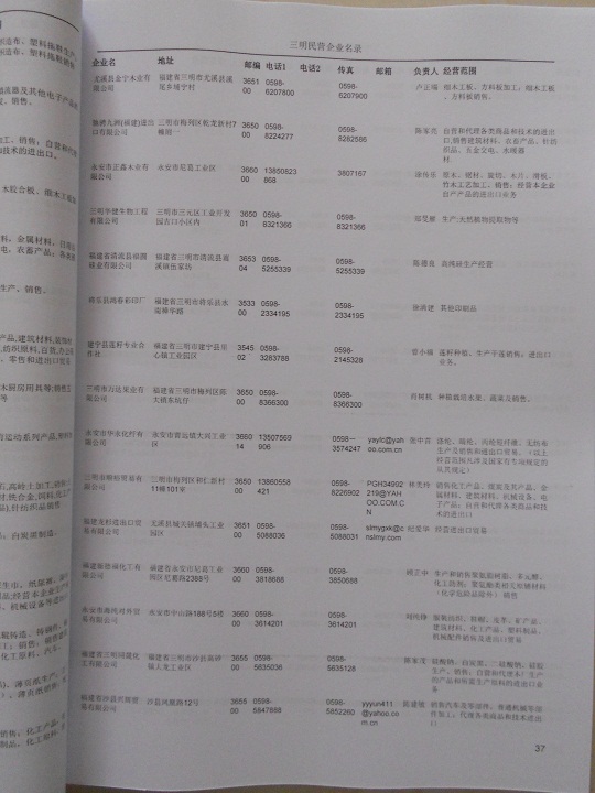 2021版最新三明企業黃頁包括《三明制造企業黃頁》、《三明民營企業黃頁》,現優惠價:280元/冊。每冊內容包括:單位名稱、地址、郵編、電話、傳真、郵箱、經營范圍等;三明企業黃頁涵蓋了近幾年來最新成立的、有一定規模的企業,具有非常高的營銷價值。有了這套黃頁開展業務也有了針對性,也省去了盲目去尋找客戶名單而浪費的時間了,工作效率也會有很大的提高。歡迎需要三明企業黃頁的朋友及時聯系我們!
