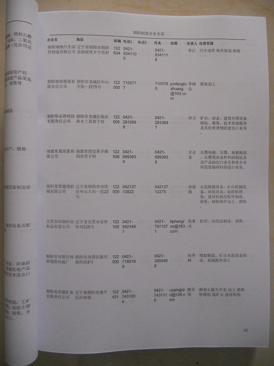 2021版最新朝陽(yáng)企業(yè)黃頁(yè)包括《朝陽(yáng)制造企業(yè)黃頁(yè)》、《朝陽(yáng)民營(yíng)企業(yè)黃頁(yè)》,現(xiàn)優(yōu)惠價(jià):280元/冊(cè)。每?jī)?cè)內(nèi)容包括:?jiǎn)挝幻Q、地址、郵編、電話、傳真、郵箱、經(jīng)營(yíng)范圍等;朝陽(yáng)企業(yè)黃頁(yè)涵蓋了近幾年來(lái)最新成立的、有一定規(guī)模的企業(yè),具有非常高的營(yíng)銷價(jià)值。有了這套黃頁(yè)開展業(yè)務(wù)也有了針對(duì)性,也省去了盲目去尋找客戶名單而浪費(fèi)的時(shí)間了,工作效率也會(huì)有很大的提高。歡迎需要朝陽(yáng)企業(yè)黃頁(yè)的朋友及時(shí)聯(lián)系我們!