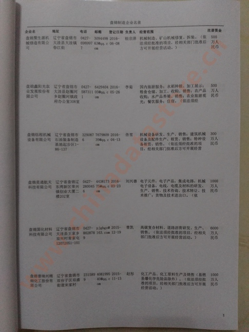 2021版最新盤(pán)錦企業(yè)黃頁(yè)包括《盤(pán)錦制造企業(yè)黃頁(yè)》、《盤(pán)錦民營(yíng)企業(yè)黃頁(yè)》,現(xiàn)優(yōu)惠價(jià):280元/冊(cè)。每?jī)?cè)內(nèi)容包括:?jiǎn)挝幻Q(chēng)、地址、郵編、電話(huà)、傳真、郵箱、經(jīng)營(yíng)范圍等;盤(pán)錦企業(yè)黃頁(yè)涵蓋了近幾年來(lái)最新成立的、有一定規(guī)模的企業(yè),具有非常高的營(yíng)銷(xiāo)價(jià)值。有了這套黃頁(yè)開(kāi)展業(yè)務(wù)也有了針對(duì)性,也省去了盲目去尋找客戶(hù)名單而浪費(fèi)的時(shí)間了,工作效率也會(huì)有很大的提高。歡迎需要盤(pán)錦企業(yè)黃頁(yè)的朋友及時(shí)聯(lián)系我們!