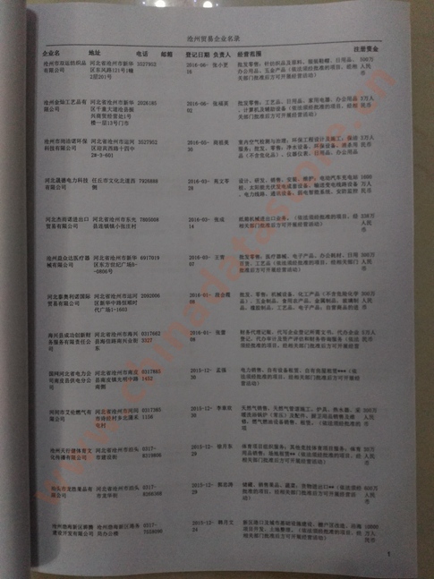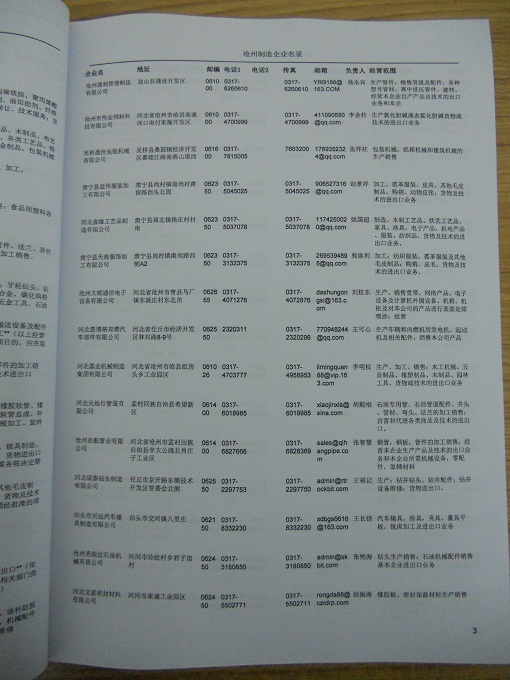 2021版最新滄州企業黃頁包括《滄州制造企業黃頁》、《滄州民營企業黃頁》,現優惠價:280元/冊。每冊內容包括:單位名稱、地址、郵編、電話、傳真、郵箱、經營范圍等;滄州企業黃頁涵蓋了近幾年來最新成立的、有一定規模的企業,具有非常高的營銷價值。有了這套黃頁開展業務也有了針對性,也省去了盲目去尋找客戶名單而浪費的時間了,工作效率也會有很大的提高。歡迎需要滄州企業黃頁的朋友及時聯系我們!