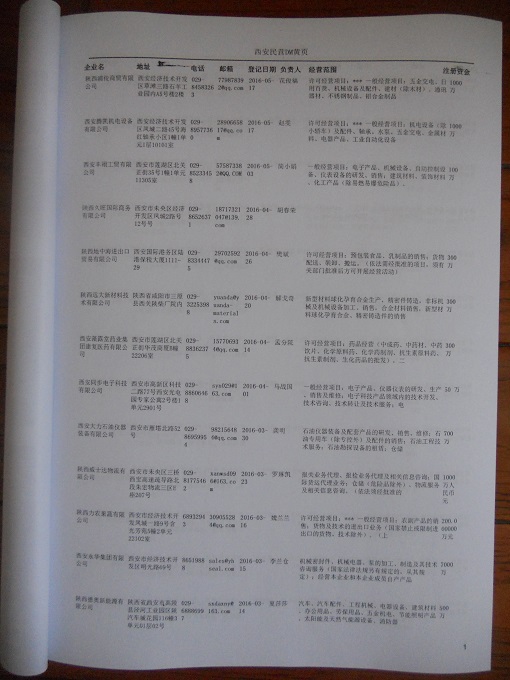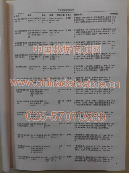 2021版最新西安企業黃頁包括《西安制造企業黃頁》、《西安民營企業黃頁》,現優惠價:280元/冊。每冊內容包括:單位名稱、地址、郵編、電話、傳真、郵箱、經營范圍等;西安企業黃頁涵蓋了近幾年來最新成立的、有一定規模的企業,具有非常高的營銷價值。有了這套黃頁開展業務也有了針對性,也省去了盲目去尋找客戶名單而浪費的時間了,工作效率也會有很大的提高。歡迎需要西安企業黃頁的朋友及時聯系我們!