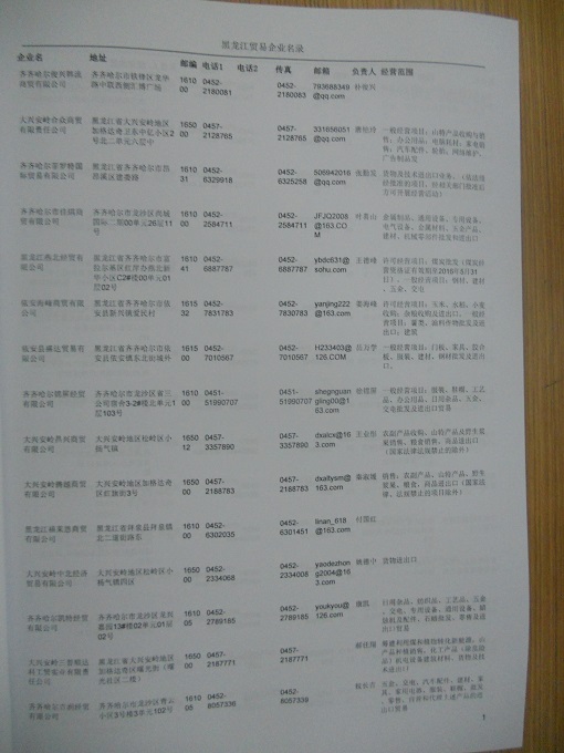 2021版最新黑龍江企業(yè)黃頁包括《黑龍江制造企業(yè)黃頁》、《黑龍江貿(mào)易企業(yè)黃頁》、《黑龍江民營企業(yè)黃頁》共三冊,優(yōu)惠價:280元/冊。每冊內(nèi)容包括:單位名稱、地址、郵編、電話、傳真、郵箱、經(jīng)營范圍等;黑龍江企業(yè)黃頁涵蓋了近幾年來最新成立的、有一定規(guī)模的企業(yè),具有非常高的營銷價值。有了這套黃頁開展業(yè)務(wù)也有了針對性,也省去了盲目去尋找客戶名單而浪費的時間了,工作效率也會有很大的提高。歡迎需要黑龍江企業(yè)黃頁的朋友及時聯(lián)系我們!