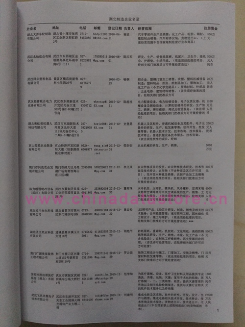 2021版最新湖北企業(yè)黃頁(yè)包括《湖北制造企業(yè)黃頁(yè)》、《湖北貿(mào)易企業(yè)黃頁(yè)》、《湖北民營(yíng)企業(yè)黃頁(yè)》共三冊(cè),優(yōu)惠價(jià):280元/冊(cè)。每?jī)?cè)內(nèi)容包括:?jiǎn)挝幻Q(chēng)、地址、郵編、電話(huà)、傳真、郵箱、經(jīng)營(yíng)范圍等;湖北企業(yè)黃頁(yè)涵蓋了近幾年來(lái)最新成立的、有一定規(guī)模的企業(yè),具有非常高的營(yíng)銷(xiāo)價(jià)值。有了這套黃頁(yè)開(kāi)展業(yè)務(wù)也有了針對(duì)性,也省去了盲目去尋找客戶(hù)名單而浪費(fèi)的時(shí)間了,工作效率也會(huì)有很大的提高。歡迎需要湖北企業(yè)黃頁(yè)的朋友及時(shí)聯(lián)系我們!