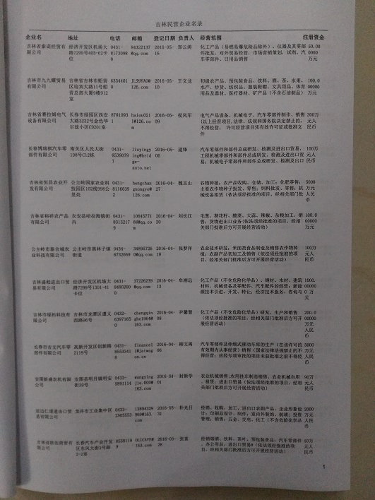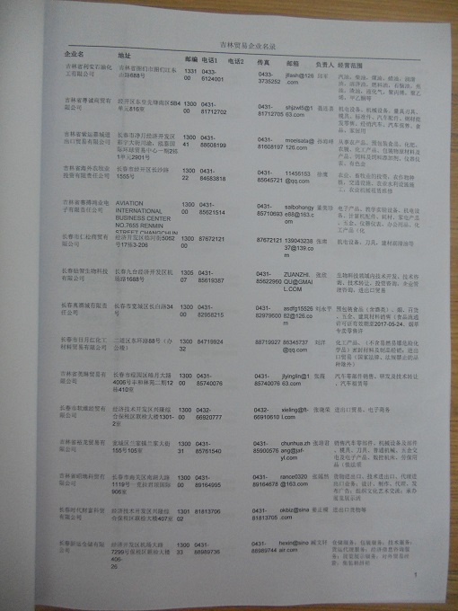 2021版最新吉林企業黃頁包括《吉林制造企業黃頁》、《吉林貿易企業黃頁》、《吉林民營企業黃頁》共三冊,優惠價:280元/冊。每冊內容包括:單位名稱、地址、郵編、電話、傳真、郵箱、經營范圍等;吉林企業黃頁涵蓋了近幾年來最新成立的、有一定規模的企業,具有非常高的營銷價值。有了這套黃頁開展業務也有了針對性,也省去了盲目去尋找客戶名單而浪費的時間了,工作效率也會有很大的提高。歡迎需要吉林企業黃頁的朋友及時聯系我們!