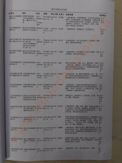2021版最新浙江企業黃頁包括《浙江制造企業黃頁》、《浙江貿易企業黃頁》、《浙江民營企業黃頁》共三冊,優惠價:280元/冊。每冊內容包括:單位名稱、地址、郵編、電話、傳真、郵箱、經營范圍等;浙江企業黃頁涵蓋了近幾年來最新成立的、有一定規模的企業,具有非常高的營銷價值。有了這套黃頁開展業務也有了針對性,也省去了盲目去尋找客戶名單而浪費的時間了,工作效率也會有很大的提高。歡迎需要浙江企業黃頁的朋友及時聯系我們!