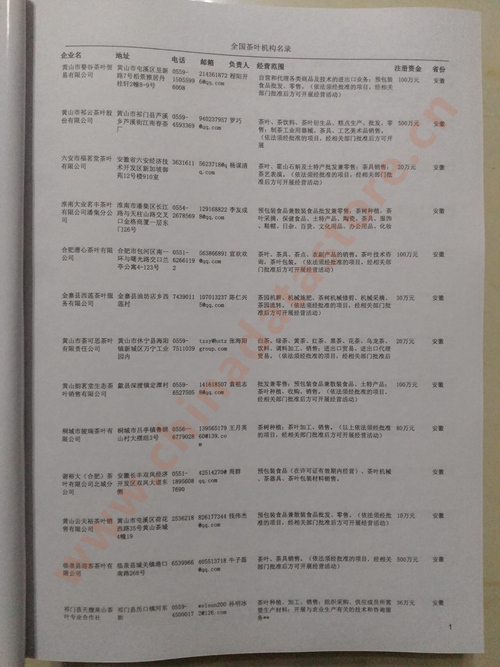 | 某省或直轄市 | 如上海、浙江茶葉企業(yè)名單 | 80% - 90% | 600元 | 附贈一冊食品紙質(zhì)印刷品 |