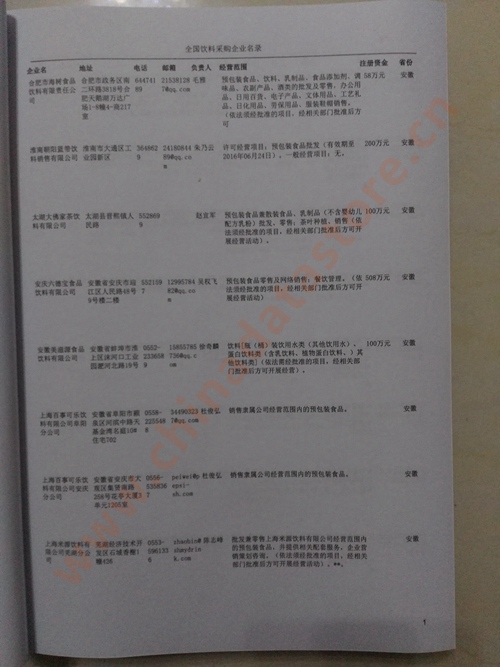 2025年新版中國飲料采購企業黃頁,收錄了全國各地經營范圍涉及飲料產品的貿易企業,這些都是頗具實力的飲料產品的中國采購商。黃頁內容包含:企業名稱、地址、電話、傳真、郵箱、經營范圍、省份、注冊資金等信息。該套黃頁包含一個黃頁光碟加一冊紙質書刊,價格是1200元,共收錄了全國各地大概10000家飲料產品采購企業。黃頁光碟中是EXCEL格式,信息可任意修改、復制、打印、導出及導入到傳真、郵件群發等軟件中,無任何限制。