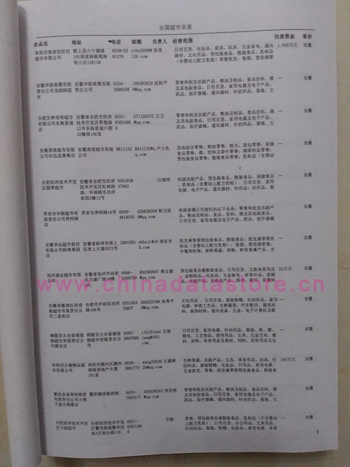| 全國超市企業黃頁 | 全國所有超市企業黃頁 | 80% - 90% | 3000元 | 附贈上下冊超市紙質印刷品 |