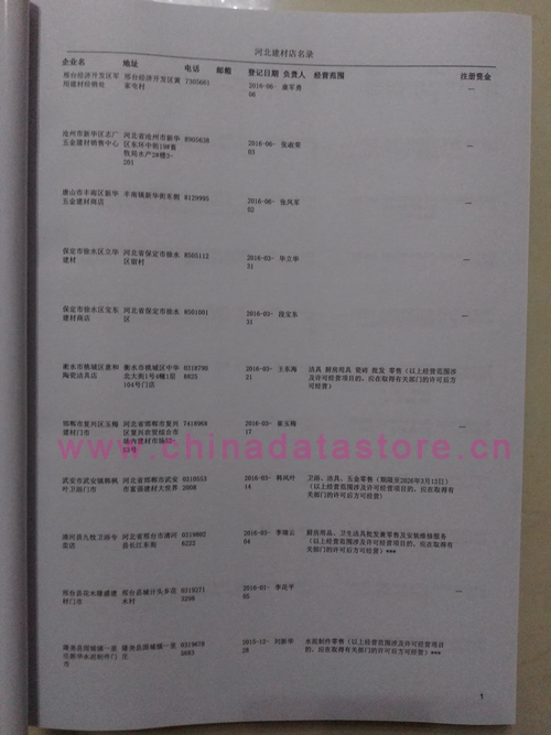 最新河北建材店黃頁數據更新日期2025年12月最新,數據準確率高,是您開展各項營銷活動的必備資料。名單包括:店鋪名稱、地址、省份、城市、電話、經營范圍、營業時間信息。河北建材店企業黃頁數據為Excel格式,信息可任意修改、復制、打印,無任何限制。