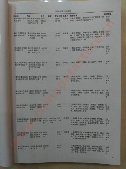 | 浙江包裝企業黃頁 | 所有浙江包裝企業名單 | 80% - 90% | 600元 | 附贈一冊浙江包裝紙質印刷品 |