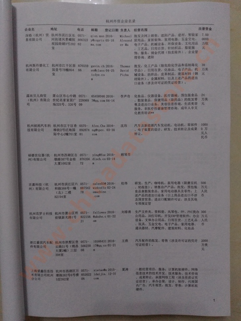 最新杭州外資企業黃頁涵蓋了杭州外商獨資企業、中外合資經營企業以及港、澳、臺資企業,包括杭州臺資日資企業黃頁,杭州外企黃頁具體內容包括:企業名稱、地址、電話、傳真、郵箱、經營范圍、注冊資金等信息;杭州外資企業黃頁里面的企業都一些中外合資的大企業,這些公司經濟實力都比較雄厚,出口產品也比較多,業務范圍都比較廣,跟他們開展業務往來都比較容易;有了杭州日企臺企黃頁開展業務也有了針對性,也省去了盲目去尋找客戶名單而浪費的時間了,工作效率也會有很大的提高.歡迎需要的客戶及時聯系我們!